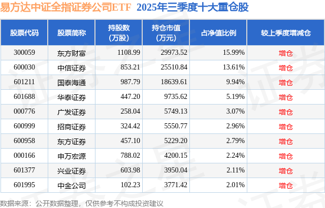 本站音问,日前易方达中证全指证券公司ETF基金公布三季报,2025年三季度最新限度18.75亿元,季度净值涨幅为11.52%。