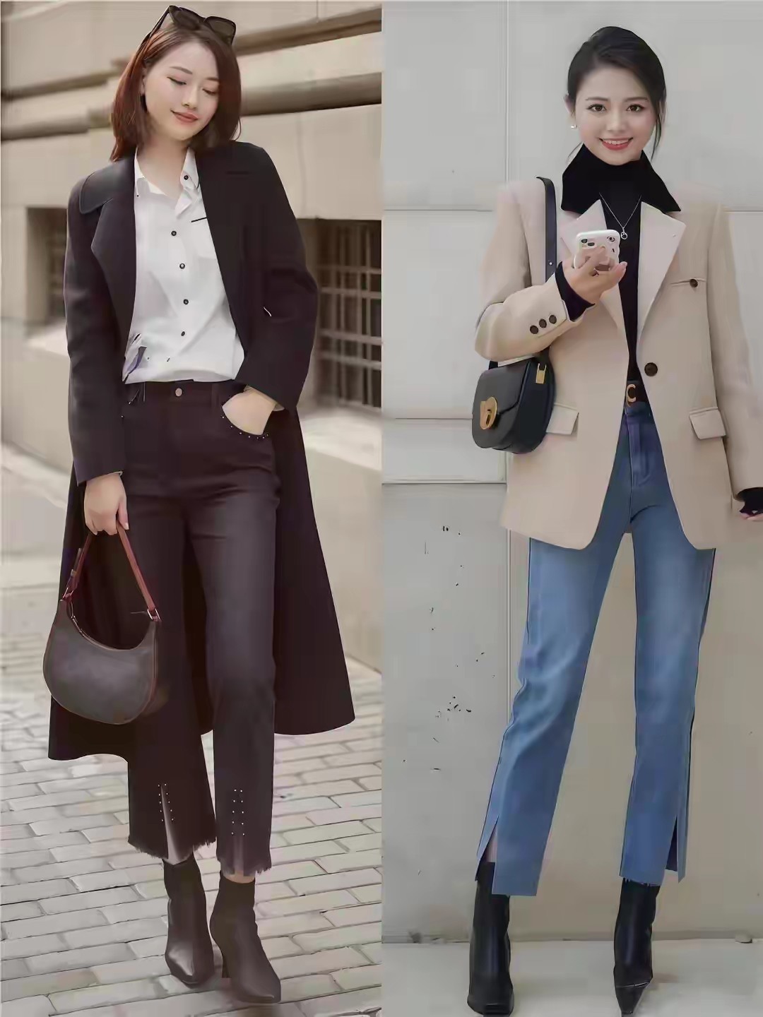 别说上头这一条开叉的牛仔9分裤穿在身上,呈现出一种御姐的轻熟风,再穿上相比有品性的高跟短靴,就能使多礼魄的腿型变得相等的修长平直,领有大长腿,当然不在话下,上衣的话,你不错用大衣外衣,也不错用西装外衣来组合,会相比干练。