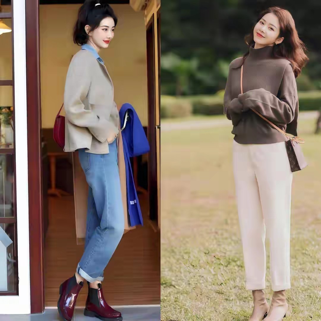 第三章:职场女性采选9分裤搭配短靴照实更轸恤文雅①毛衣搭配9分裤