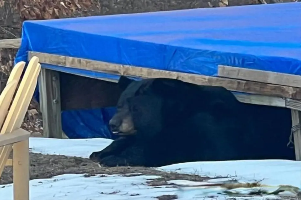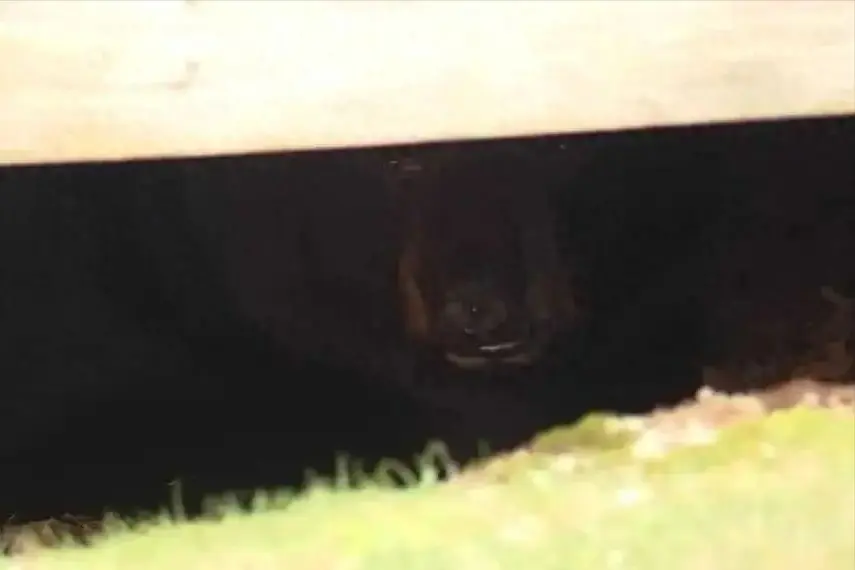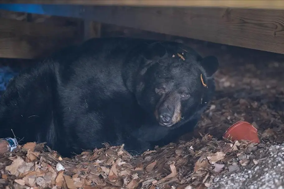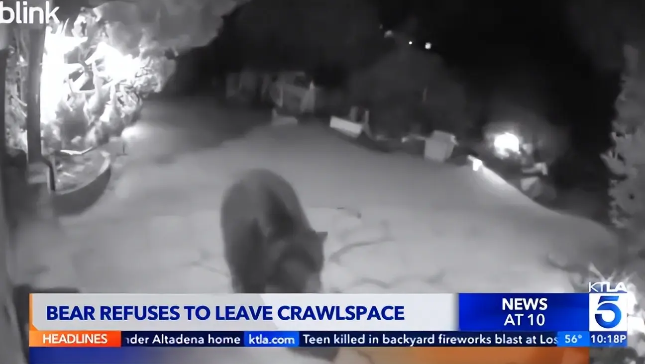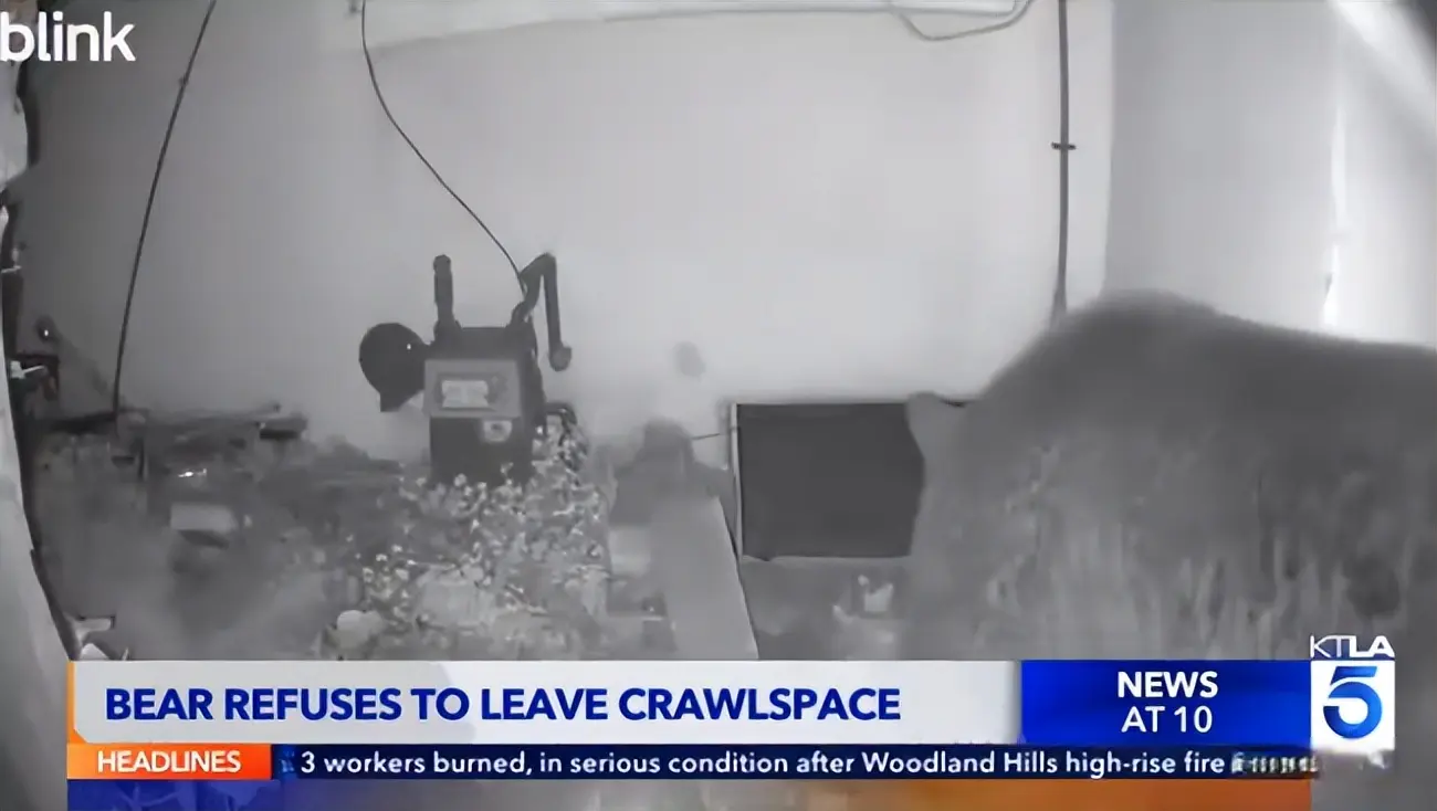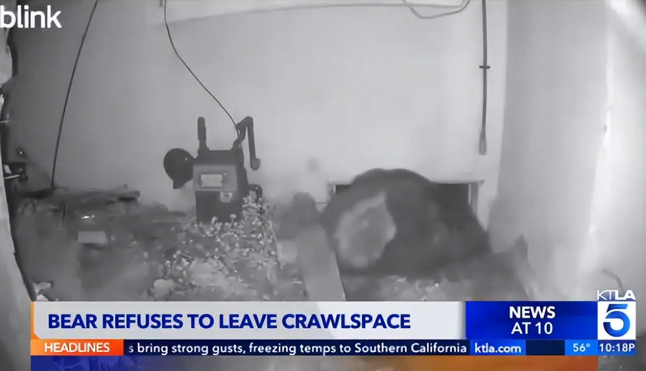 深夜起来喝水,听见客厅地板下传来"咚咚"响,以为是水管爆了,拿用具撬开地板缝一看,好家伙,一只比洗衣机还壮的黑熊正蜷在那边,爪子上还挂着他家前晚扔掉的披萨盒纸片。