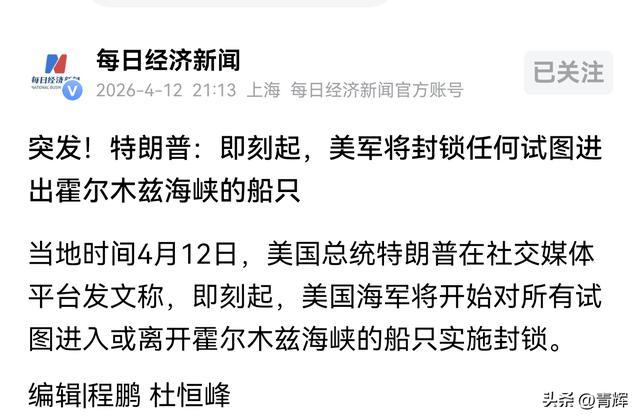 伊朗方面把好意思军的军舰从霍尔木兹海峡逼退之后,特朗普很快就有了最新动作。