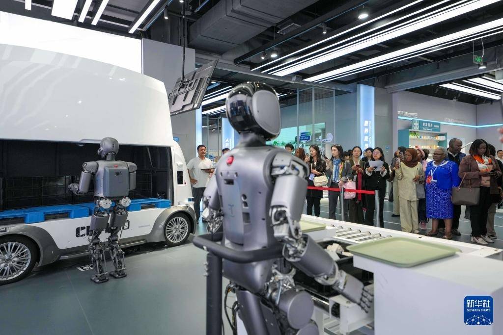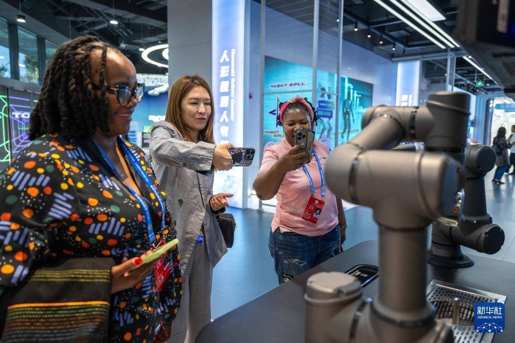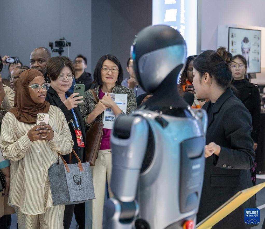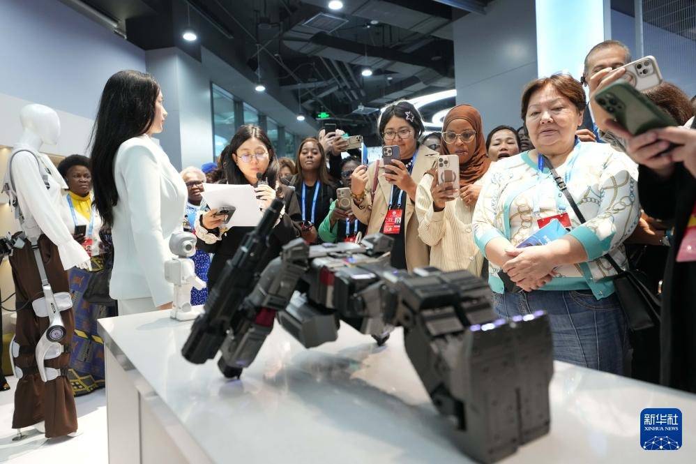 r10月14日,各人妇女峰会参会嘉宾在北京经开区机器东谈主大寰宇参不雅。