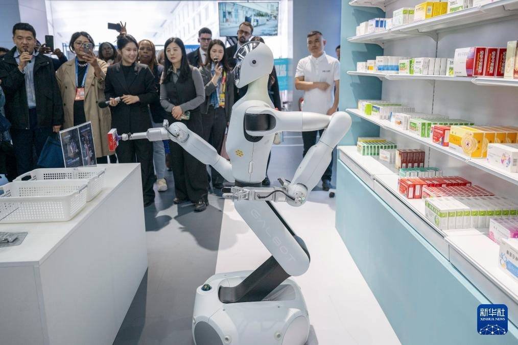 r10月14日,嘉宾在北京经开区机器东谈主大寰宇不雅看机器东谈主拿取药品。